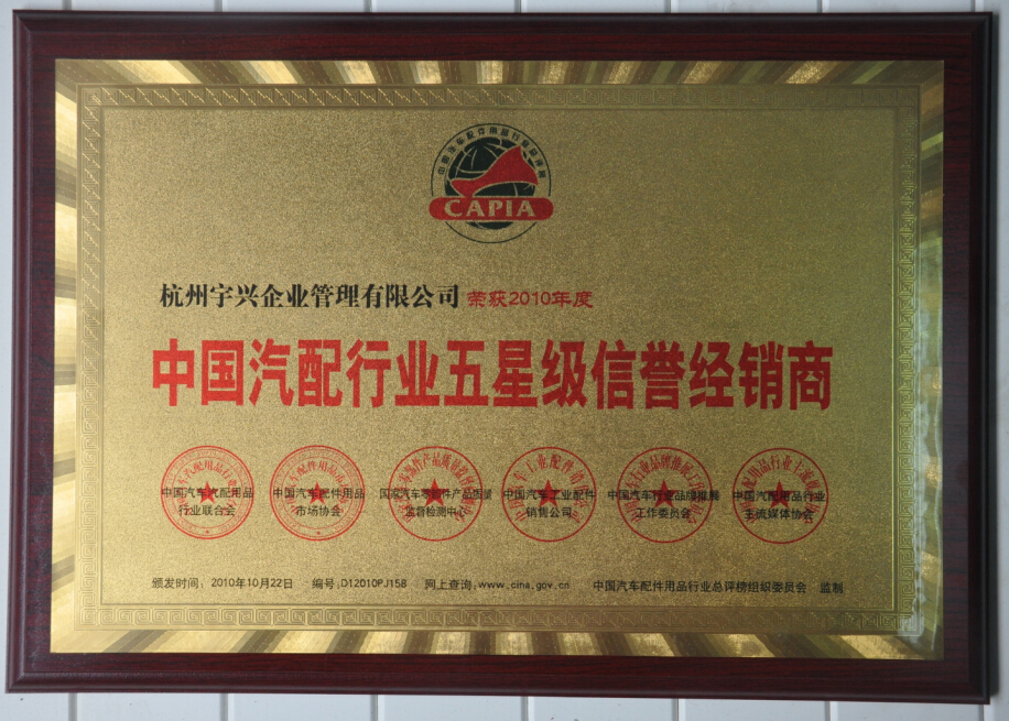 中國汽配行業五星級信譽經銷商中國汽車汽配用品行業聯合會理事單位